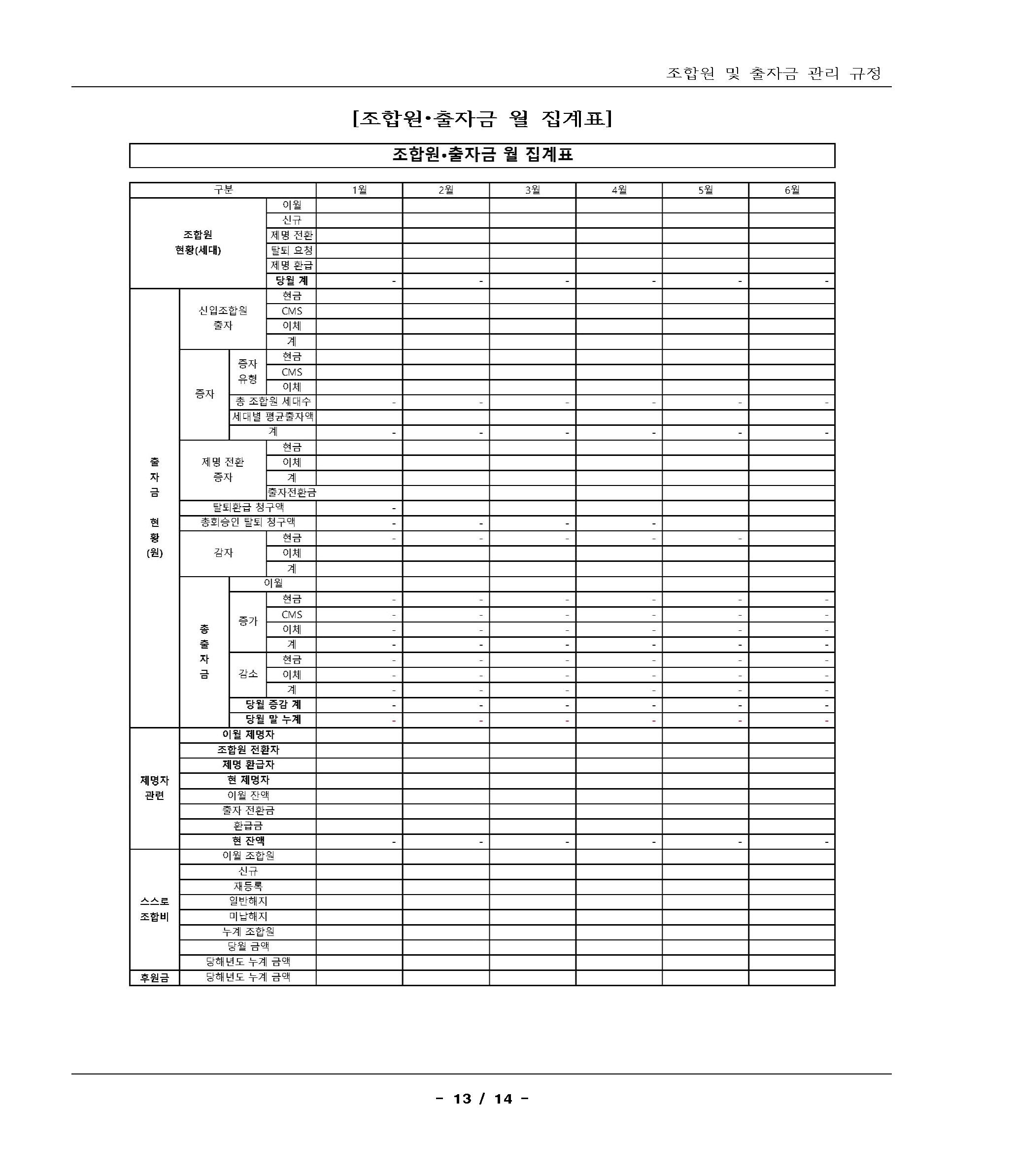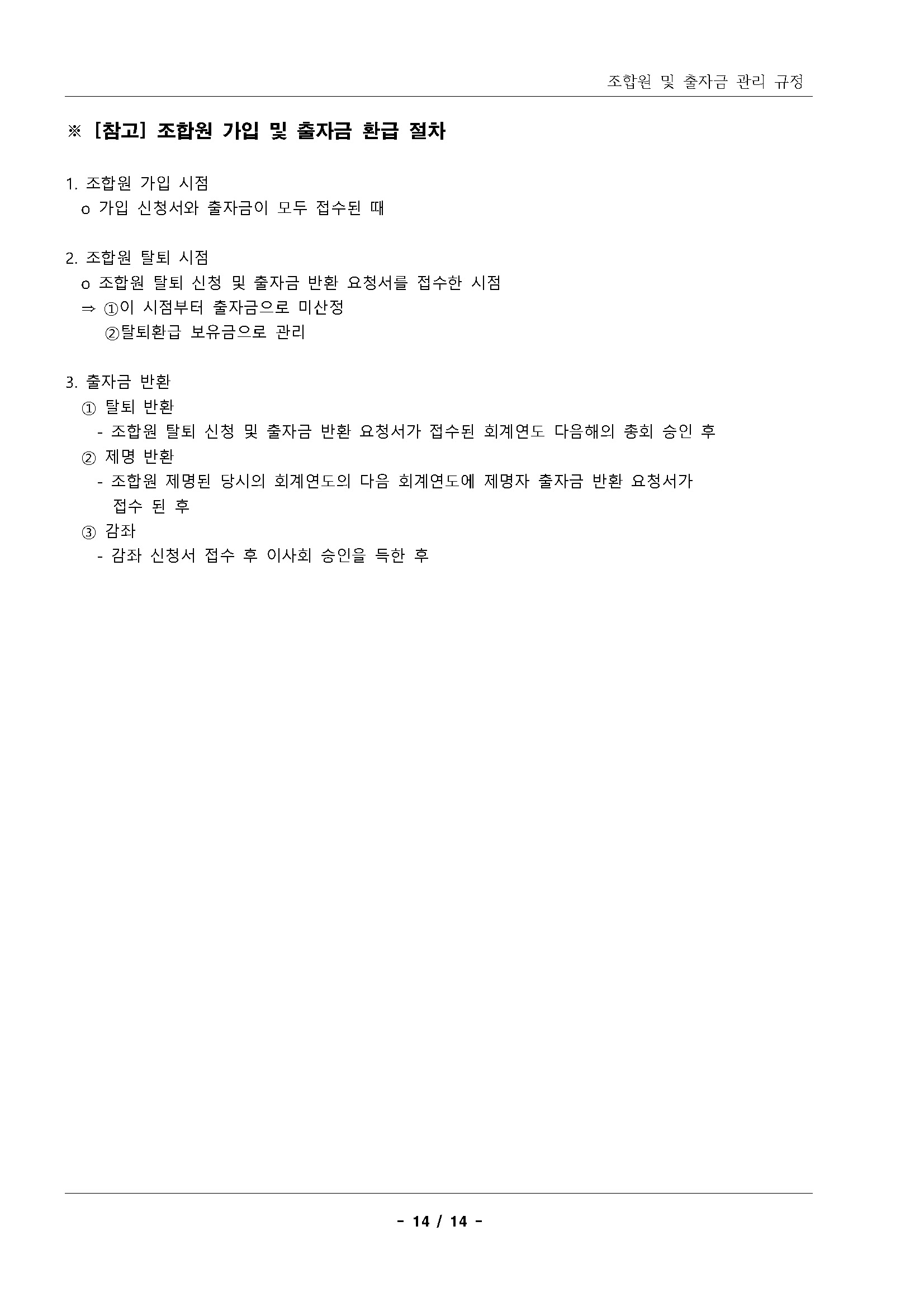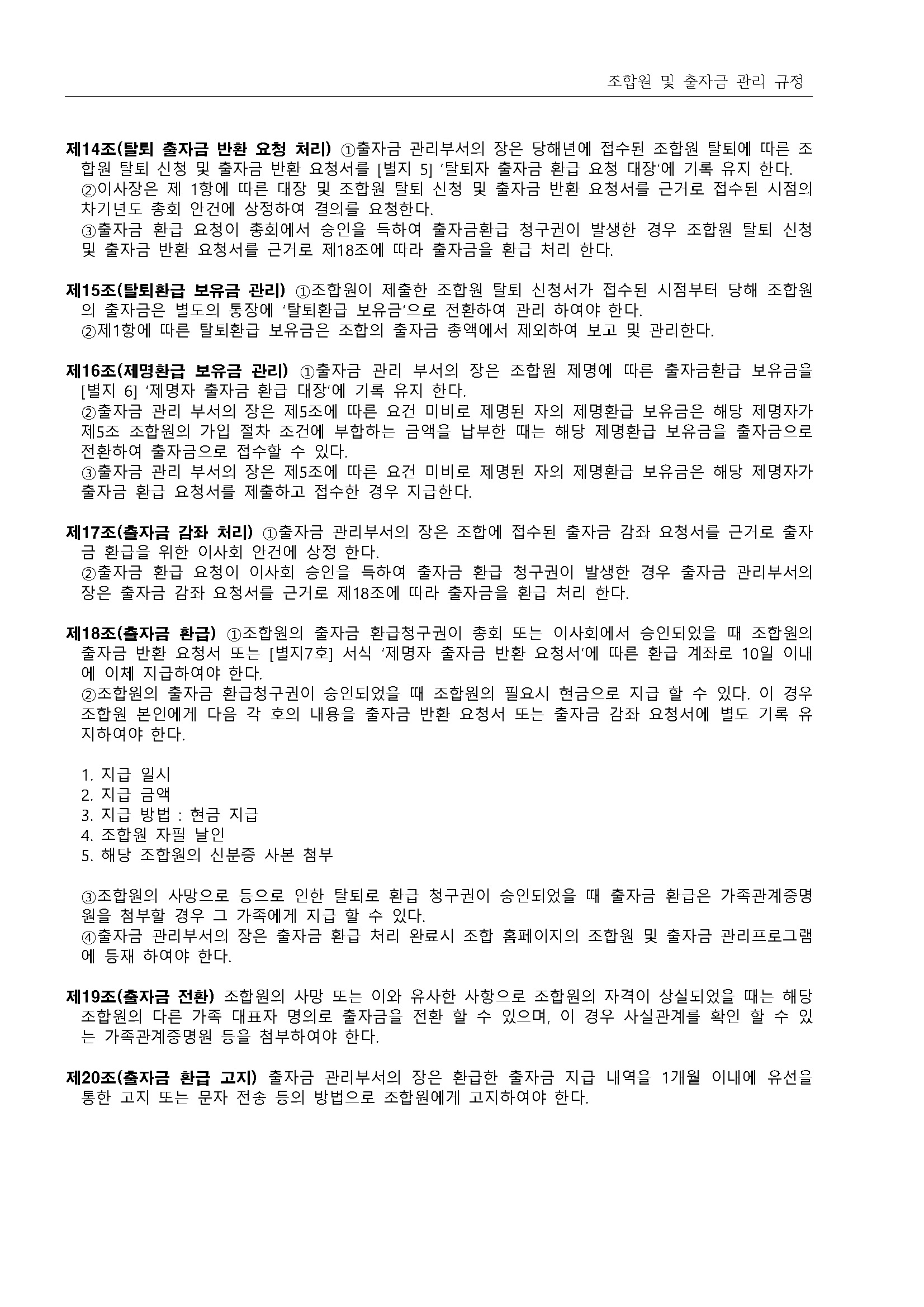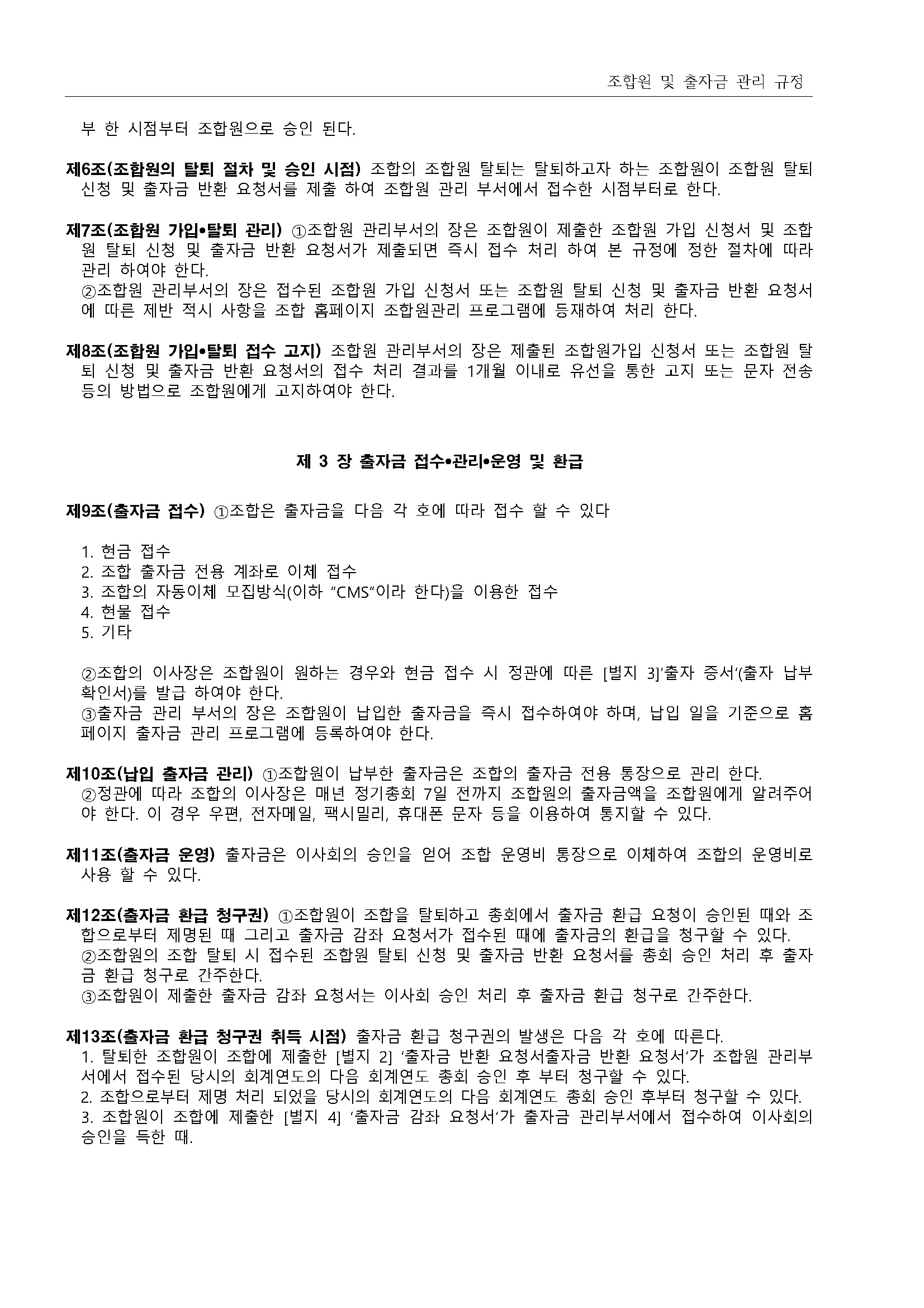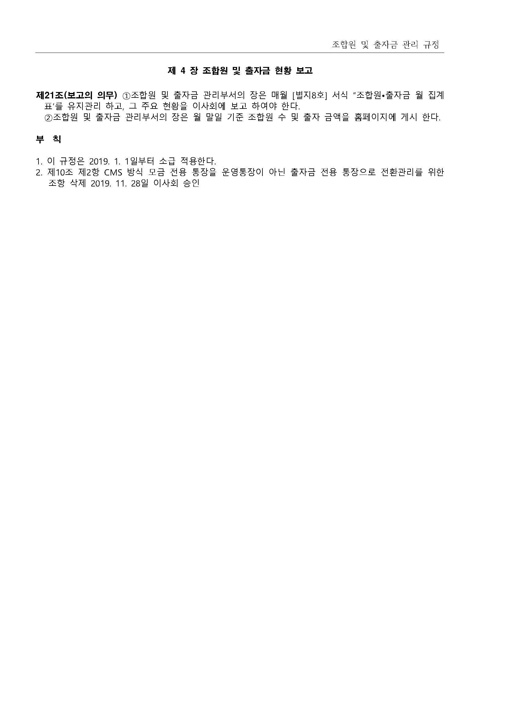 13.조합원 및 출자금 관리 규정(2019.11.28 개정) 상세내용