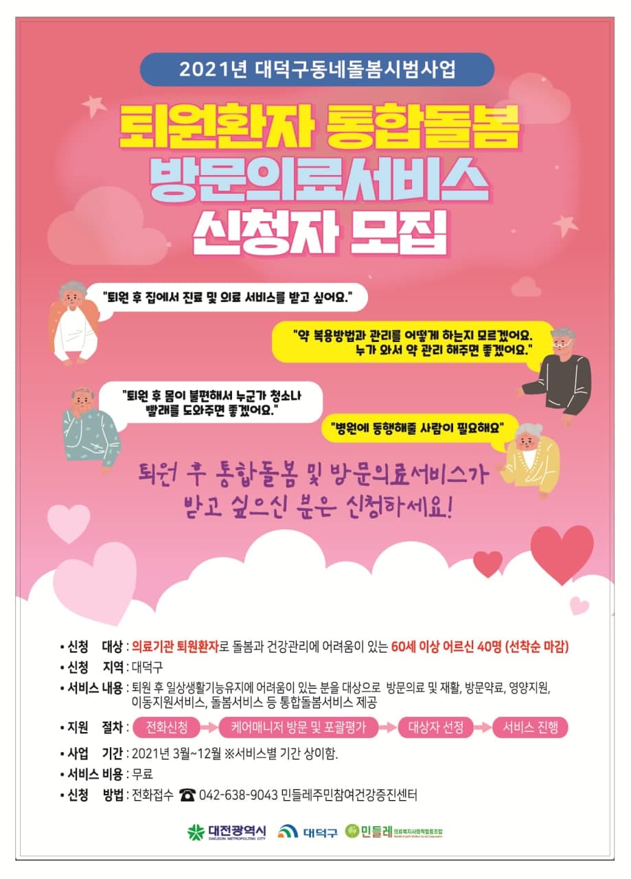 퇴원환자 통합돌봄 방문의료서비스 신청자 모집 안내!