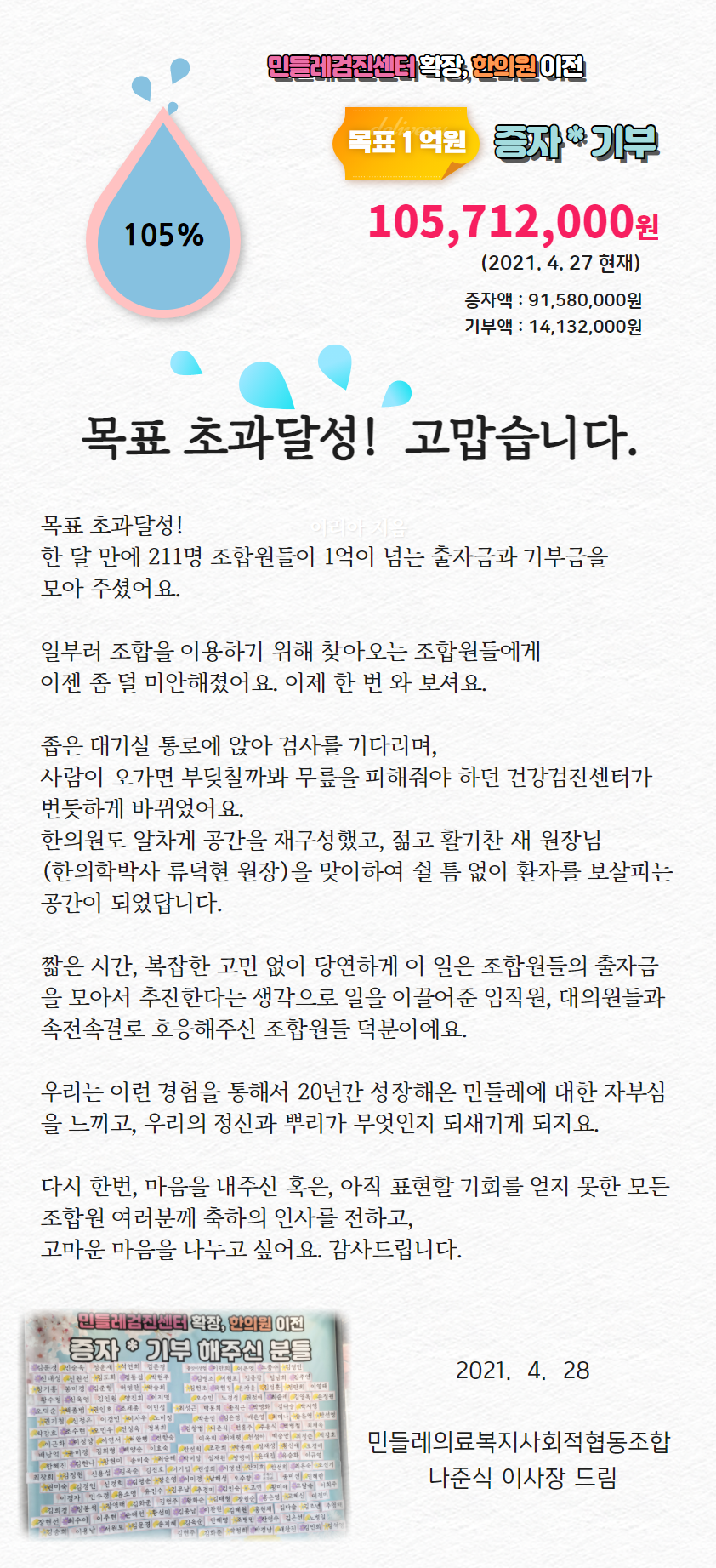 [특별증자,기부] 목표초과달성! 고맙습니다.