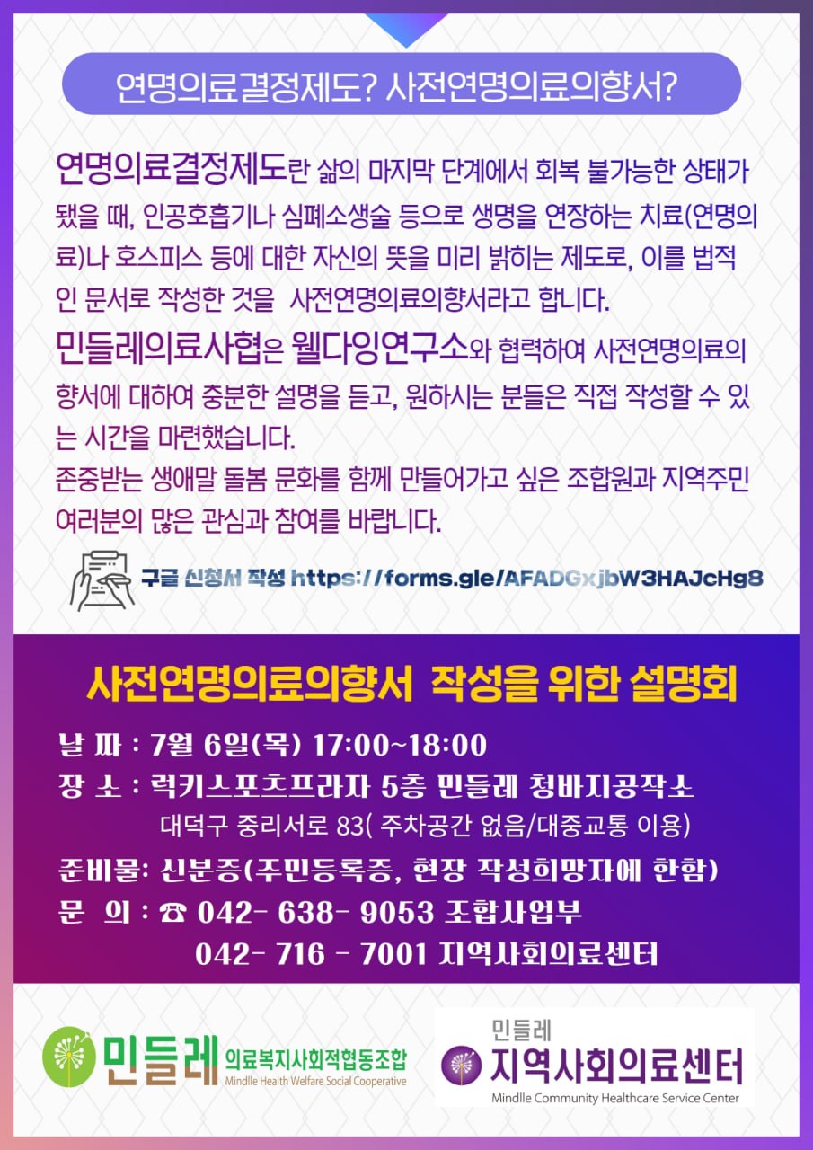 | 제목 | 사전연명의료의향서 작성을 위한 설명회 |