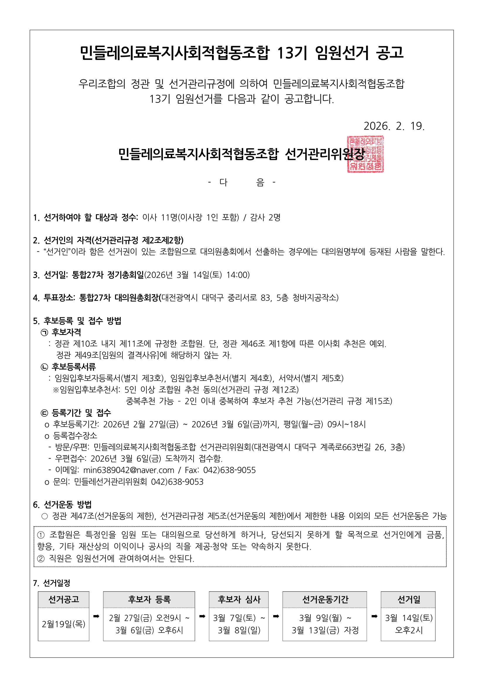 | 제목 | 2026년 13기 임원(이사, 감사)선거 공고 |