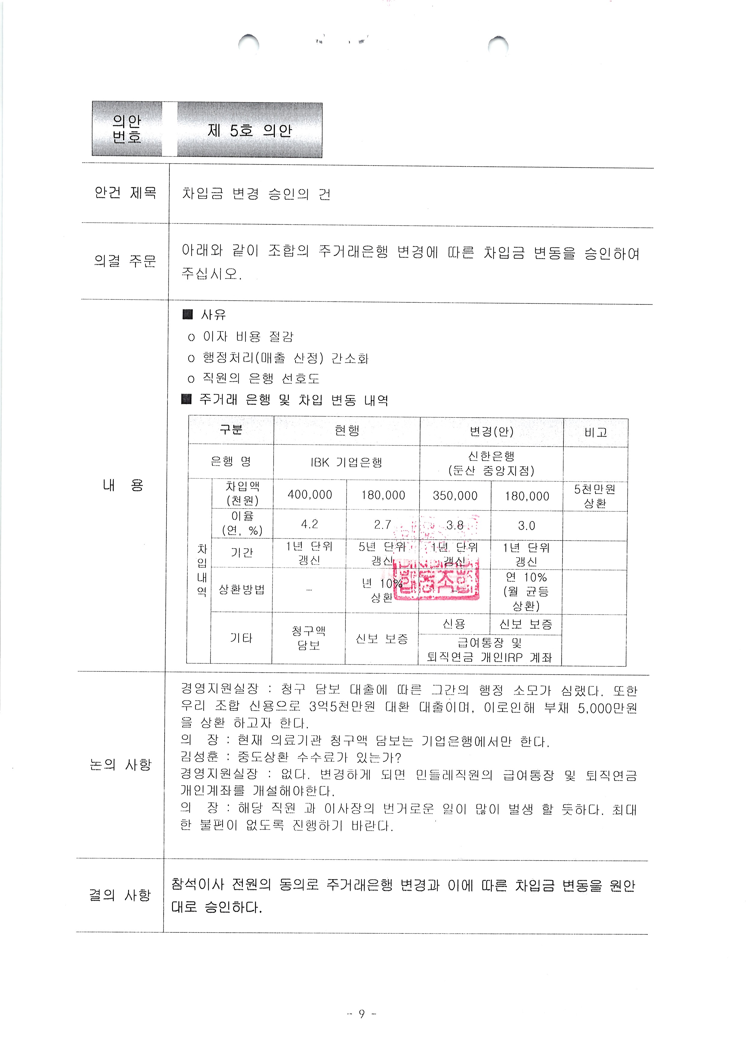 이사회회의록