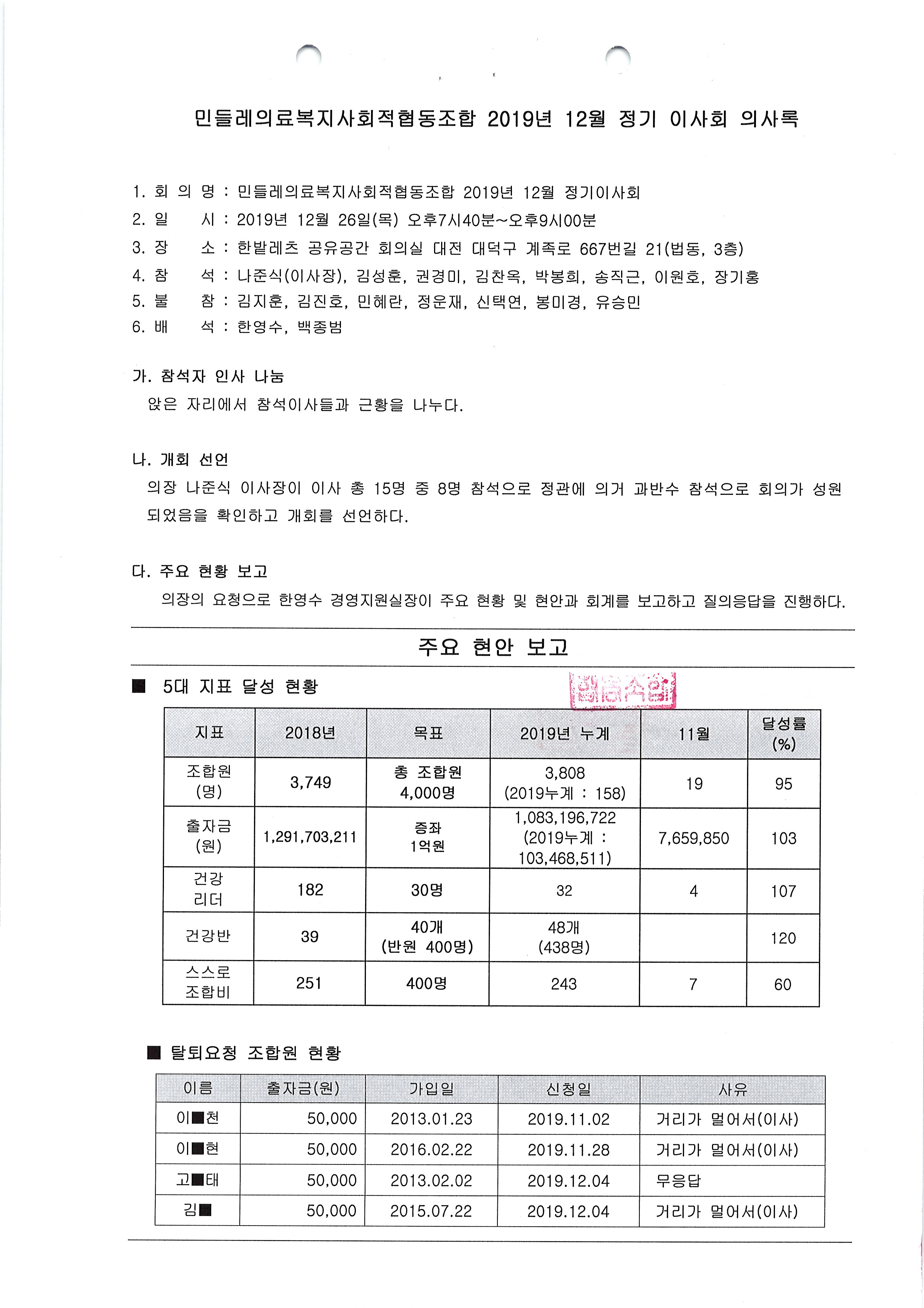 [2019-12] 정기이사회 결과보고