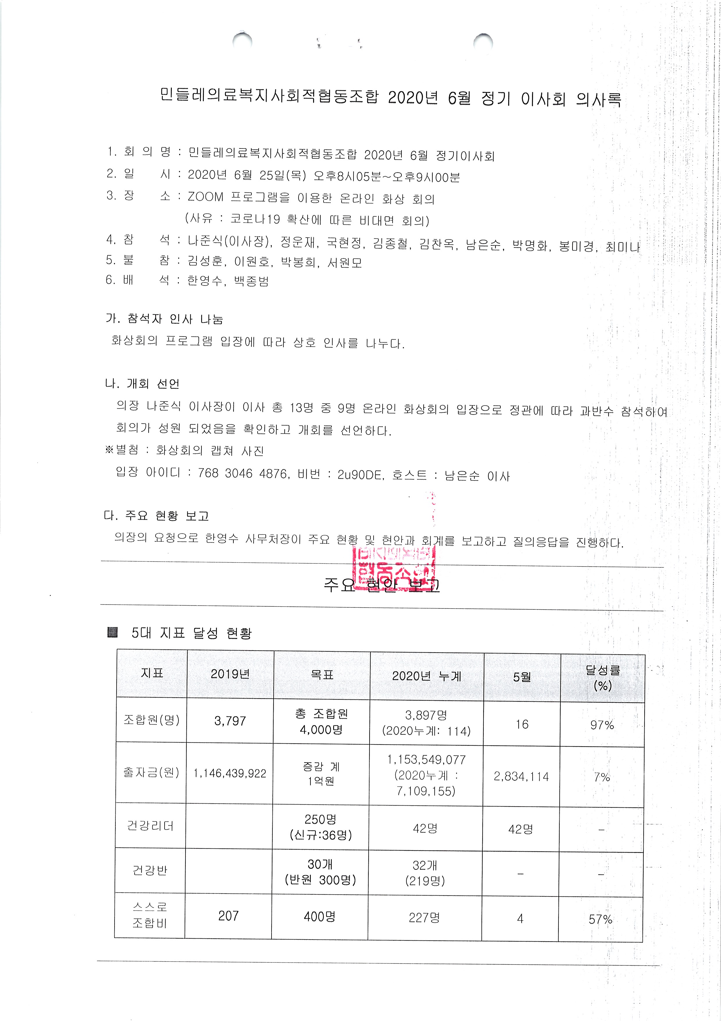 [2020-06] 정기이사회 결과보고