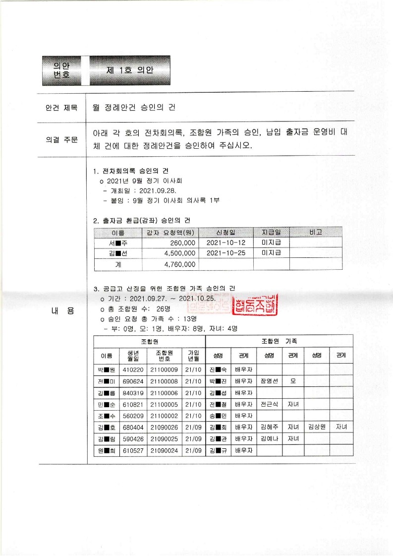[2021-09] 정기이사회 결과보고