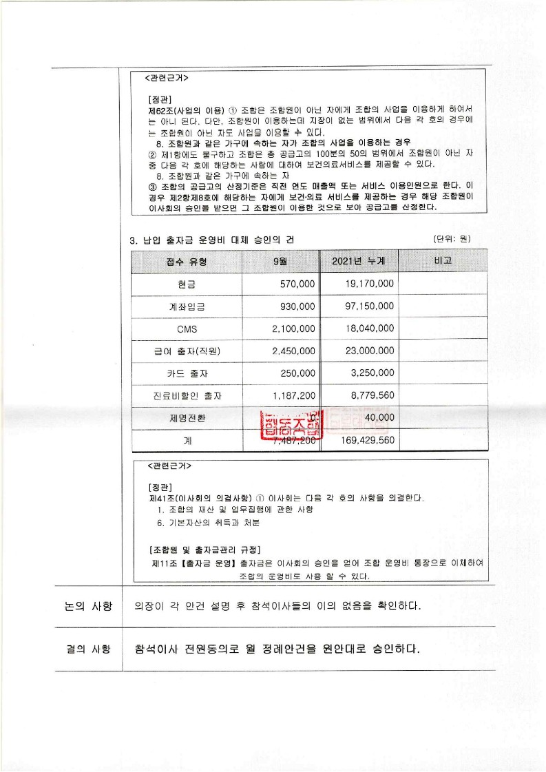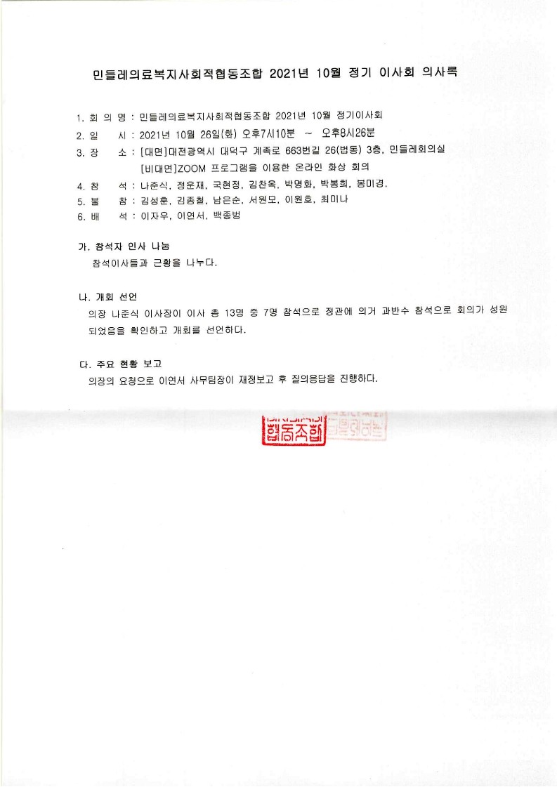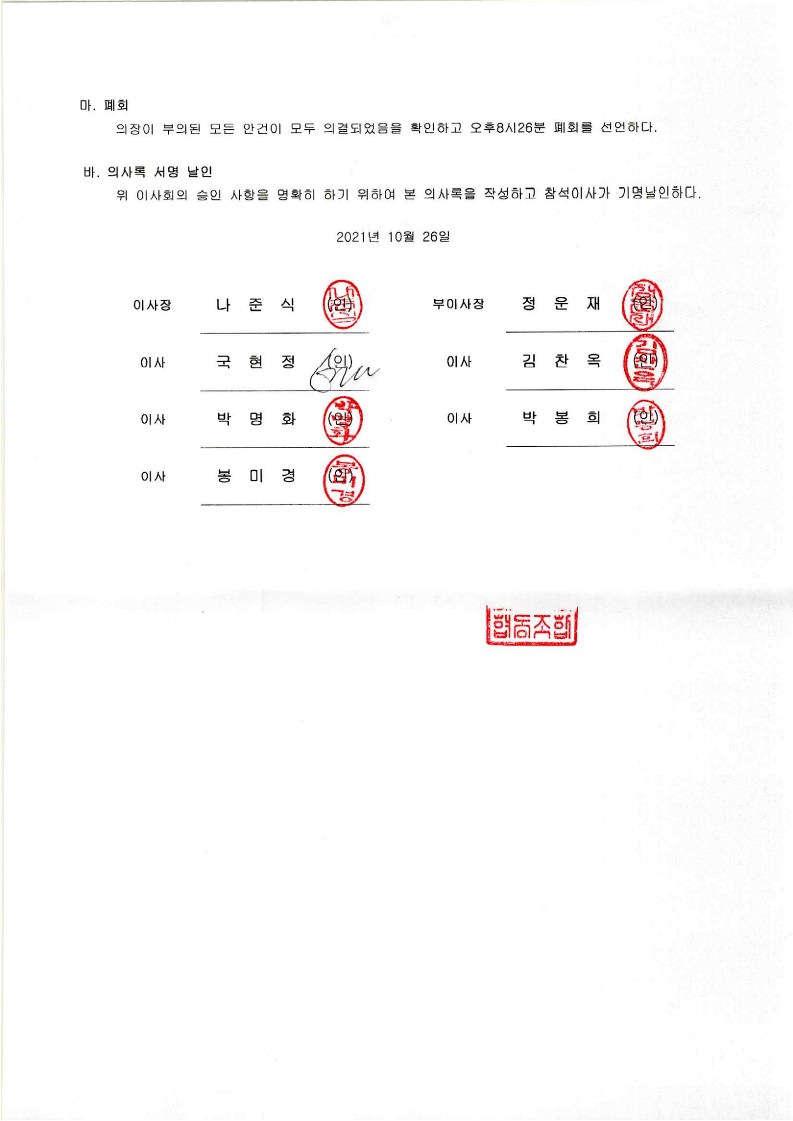 [2021-10] 정기이사회 결과보고
