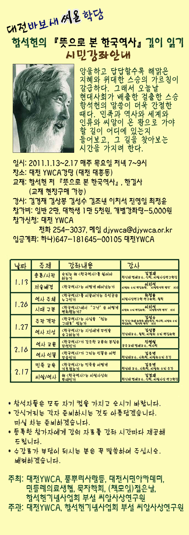 주관 : 대전 YWCA, 함석헌기념사업회 부설 씨사상연구원